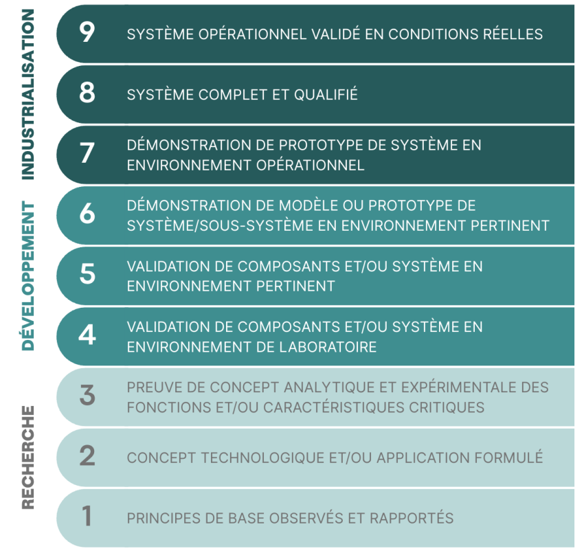 Cette échelle graduée de 1 à 9 permet de situer une technologie selon sa maturité :
